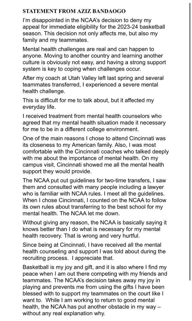 Those of us who have followed UC bball for any length of time could see this coming a mile away. We have been looked upon as the ugly step sister to THE Ohio state University who stole their championship away from them not once but twice. It's been over fifty years and the NCAA has it's collective panties in a bunch over it still. I don't understand how if Aziz consulted with an attorney prior to filing and was given advice conducive to his waiver being submitted then the only interpretation of Aziz's denials by the AD's and coach's is petty, vindictive, with nefarious intentions and only meant to suppress any success we could have had in our first year in the